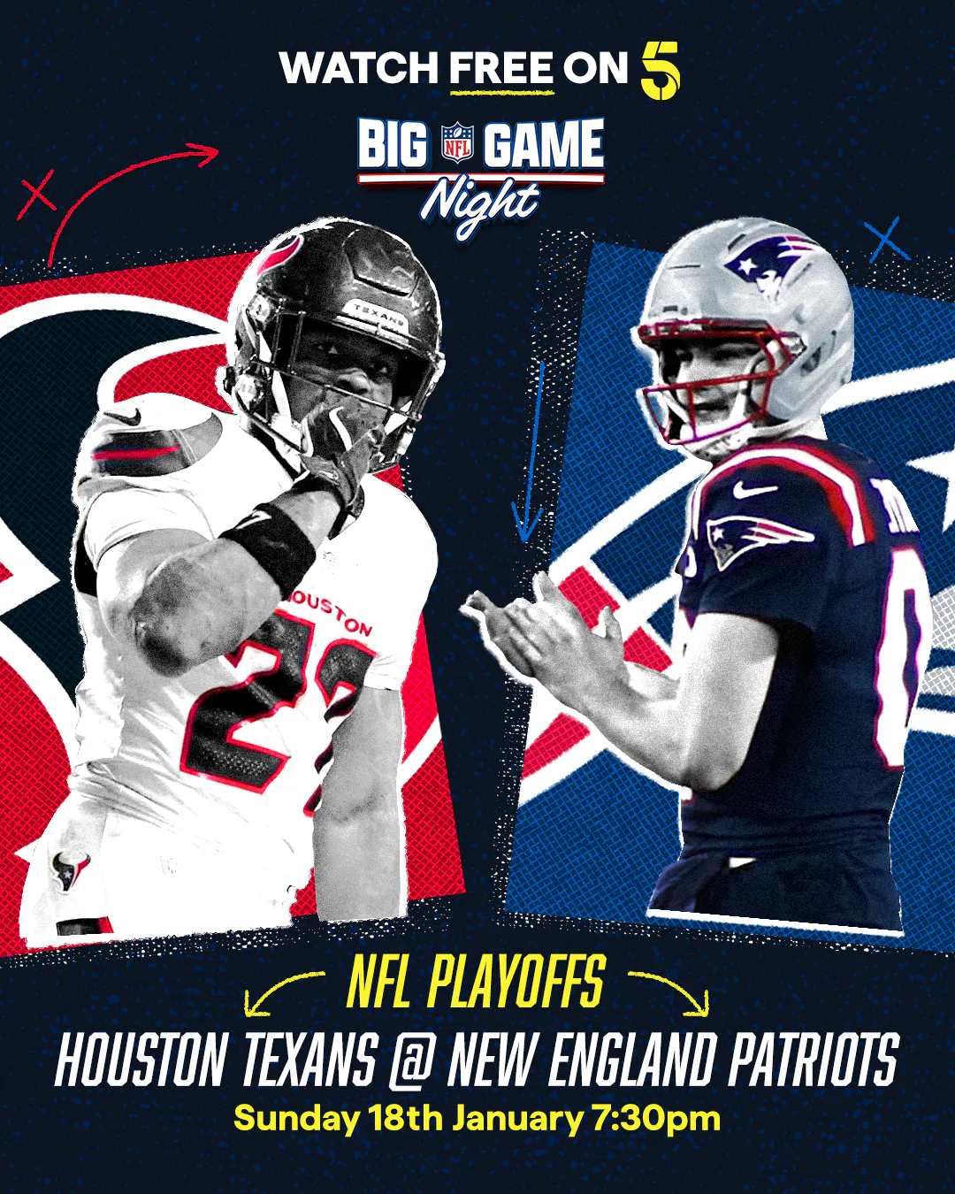 NFL Big Game Night on Channel 5 is an ambitious new TV show format which blends gameshow fun with live coverage of the NFL. Making the NFL more accessible to a UK audience, Big Game Night filled the often-criticised frequent ad breaks with party games, comedic sketches and panel show banter.